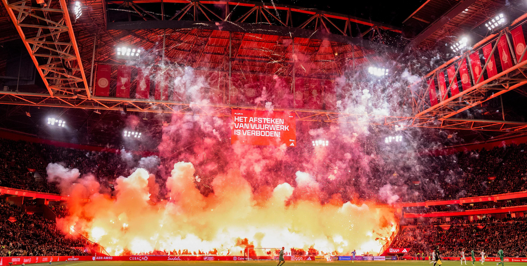 მიმდინარე სეზონში ამსტერდამული კლუბი არასახარბიელოდ ასპარეზობს და ჩემპიონატის ლიდერს უკვე 17 ქულით ჩამორჩება, თუმცა, ფანებმა მატჩის მე-13 წუთზე პერფორმანსი სულ სხვა მიზეზის გამო დადგეს და სტადიონზე ფეიერვერკები ისროლეს. მთავარი არბიტრი იძულებული გახდა, რომ შეხვედრა დროებით შეეჩერებინა. 45 წუთის შემდეგ, ბას ნიჰუისმა მატჩის გაგრძელების ნიშანი მისცა, მაგრამ ფანებმა ფეიერვერკები კიდევ ერთხელ ისროლეს და მატჩი საბოლოოდ შეწყდა.