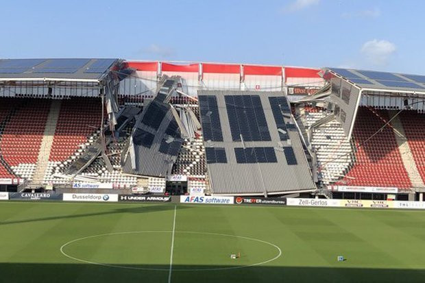 საფეხბურთო კლუბ "ალკმაარის" "AFAS არენაზე" დღეს ერთ-ერთი ტრიბუნა ჩამოინგრა. 17 000 იანი სტადიონის კონტრუქცია ჰოლანდიაში მომძლავრებულმა ქარმა შეიწირა.