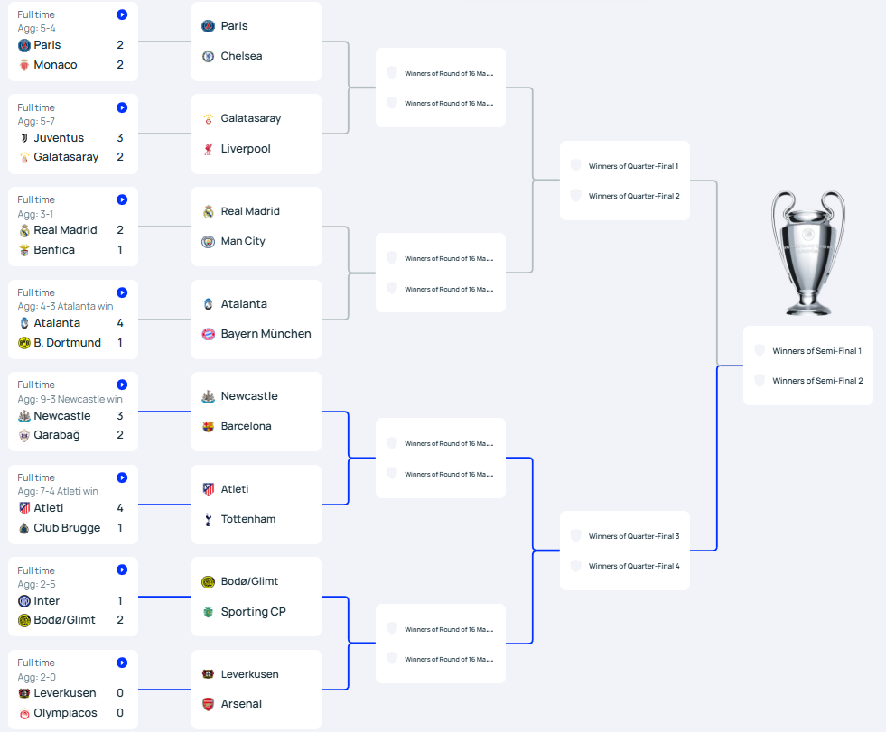 ჩემპიონთა ლიგა: მერვედფინალური წყვილები და სატურნირო ბადე ცნობილია