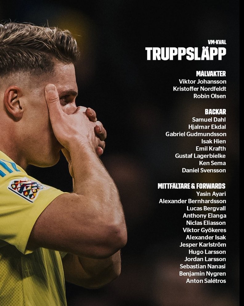 შვედეთის ნაკრების 48 წლის თავკაცმა - ჯონ დალ ტომასონმა, მსოფლიო ჩემპიონატის საკვალიფიკაციო მატჩებისთვის შვედეთის ნაკრების შემადგენლობა დაასახელა, სადაც ბევრისთვის მოულოდნელად, შემადგენლობაში უთამაშებელი და ცუდ ფორმაში მყოფი - ალექსანდრ ისაკი მოხვდა, რომლის სატრანსფერო საგა ჯერ კიდევ არ სრულდება.
