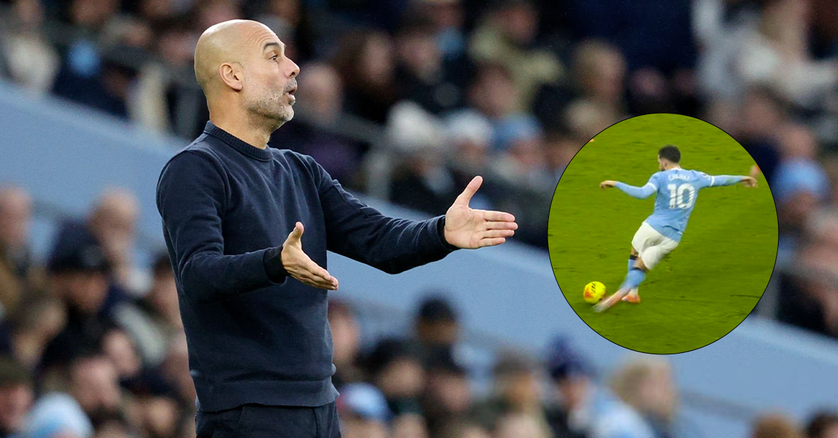 Pep Guardiola reacts to Rayan Cherki's incredible rabona assist🤩 pic.twitter.com/68RKTV325L