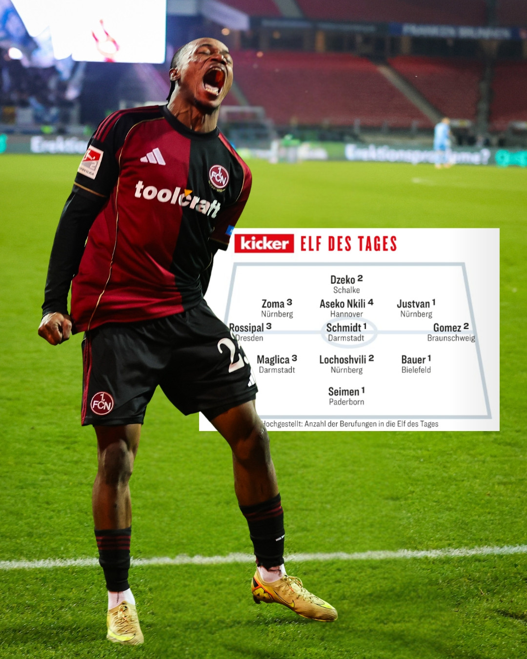 გერმანიის ბუნდესლიგა 2-ის 22-ე ტურის შეხვედრაში ნიურნბერგმა კარლსრუე 5:1 გაანადგურა. ლუკა ლოჩოშვილს შესანიშნავი მატჩი ჰქონდა და Kicker-ის სიმბოლურ გუნდშიც მოხვდა.