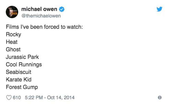 როგორც ირკვევა, ოუენს 8 ფილმი აქვს ნანახი: როკი, შერკინება, მოჩვენება, იურული პერიოდის პარკი, მაგარი ვირაჟი, ფავორიტი, კარატისტი ბიჭუნა, ფორესტ გამპი.