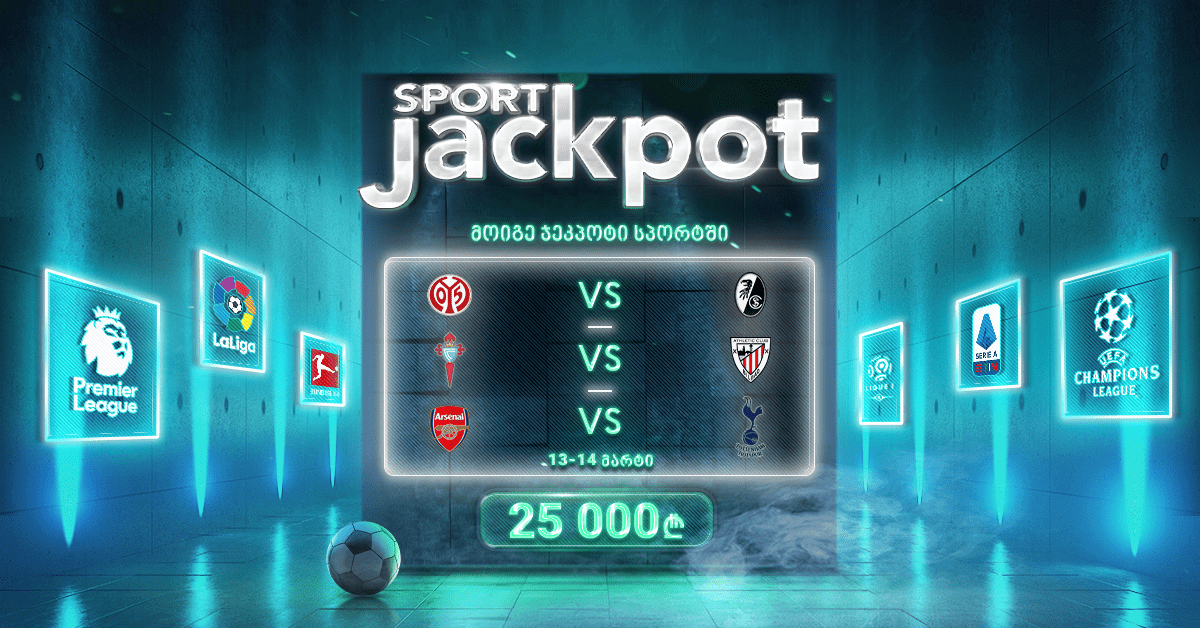 - ჯეკპოტის საპრიზო ფონდის პარალელურად ყოველ ტურში დამატებით გათამაშდება 25,000₾ Freebet Jackpot.