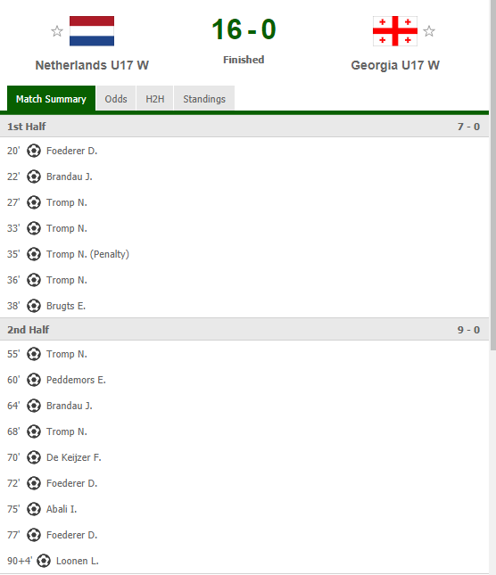 17 ოქტომბერს u17 ქალთა ნაკრებებს შორის გაიმართა ევროპის ჩემპიონატის შესარჩევი ეტაპის პირველი ტური, სადაც ქართველი U17 გოგონები ჰოლანდიას ესტუმრნენ და უდიდესი ანგარიშით 16:0 დამარცხდნენ.
