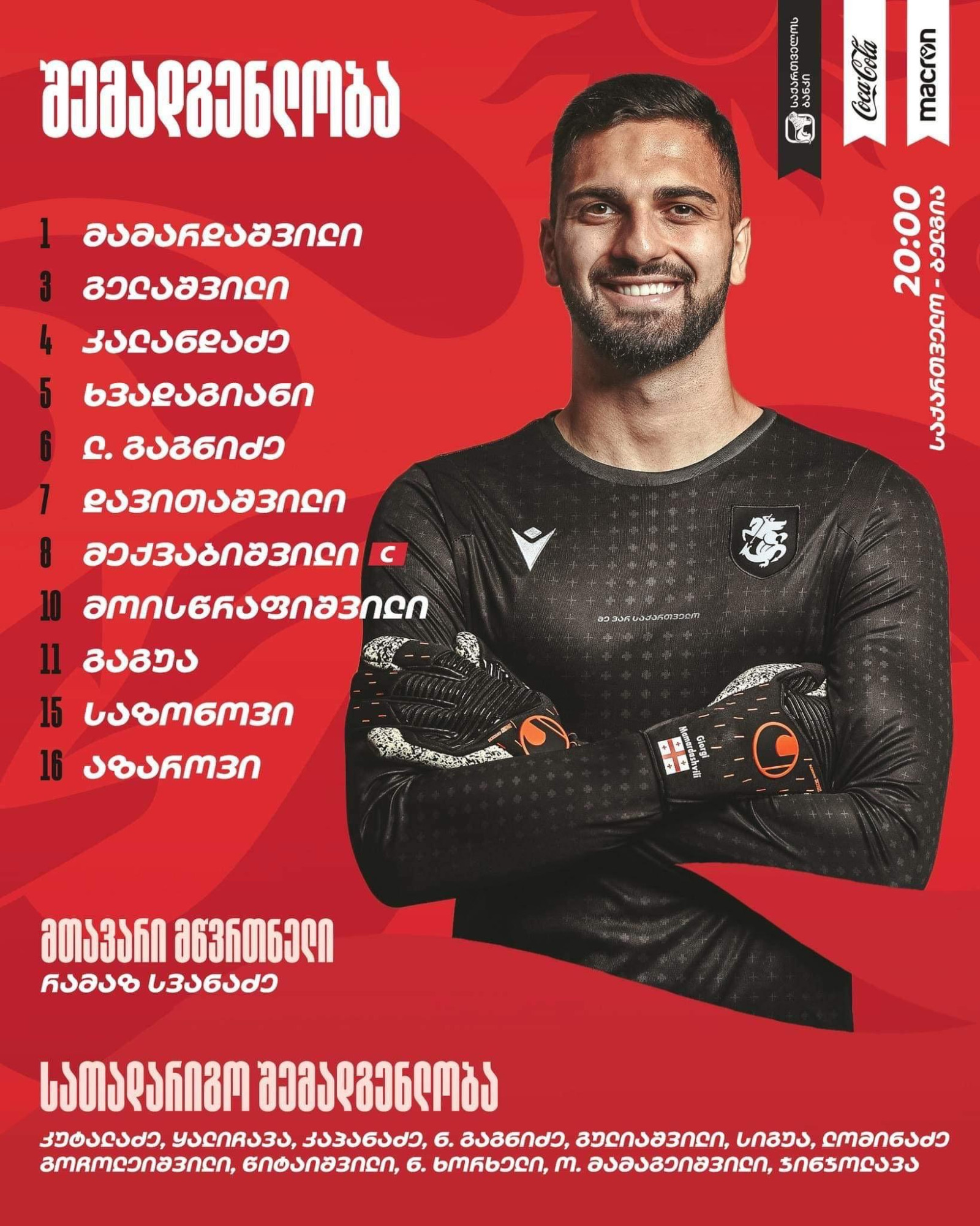 U21 | საქართველოს ნაკრების ძირითადი შემადგენლობა