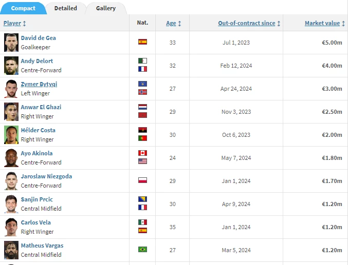 Transfermarkt-ის მონაცემებით ამ მომენტისთვის მსოფლიოს ყველაზე ძვირადღირებული თავისუფალი აგენტი დავიდ დე ხეაა, რომელიც 5 მილიონ ევროდაა შეფასებული.