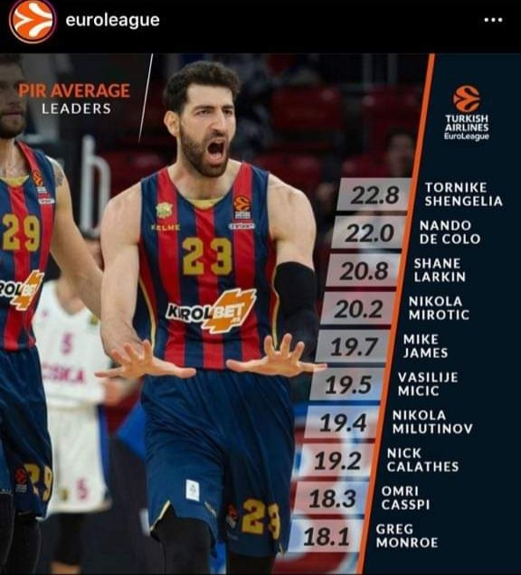 თორნიკე შენგელია ევროლიგის მიმდინარე სეზონში საშუალოდ 19.2 ქულას, 6.5 მოხსნასა და 2.3 შედეგიან გადაცემას აკეთებს.