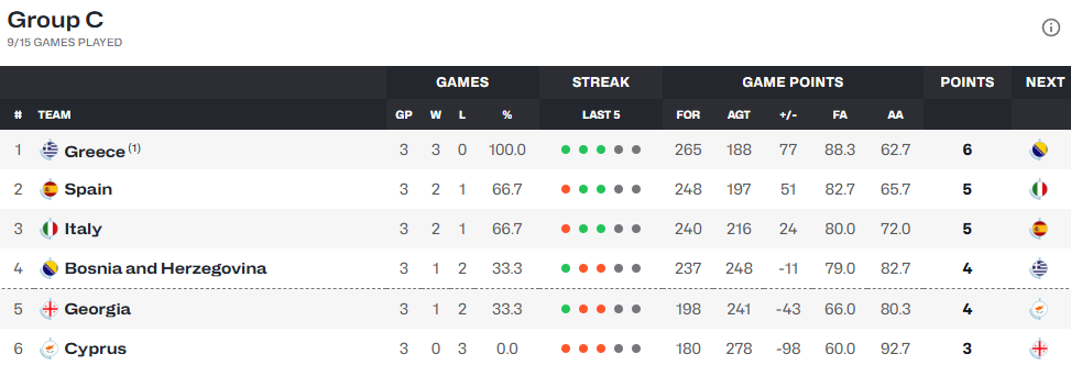 ევრობასკეტის C ჯგუფი | მე-3 სათამაშო დღე, ესპანეთმა და იტალიამ გაიმარჯვეს
