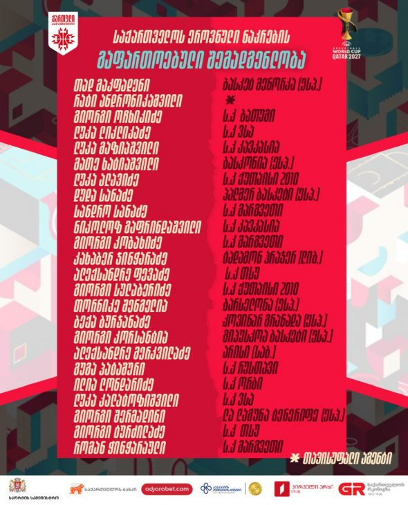 საქართველოს ნაკრების გაფართოებული შემადგენლობა