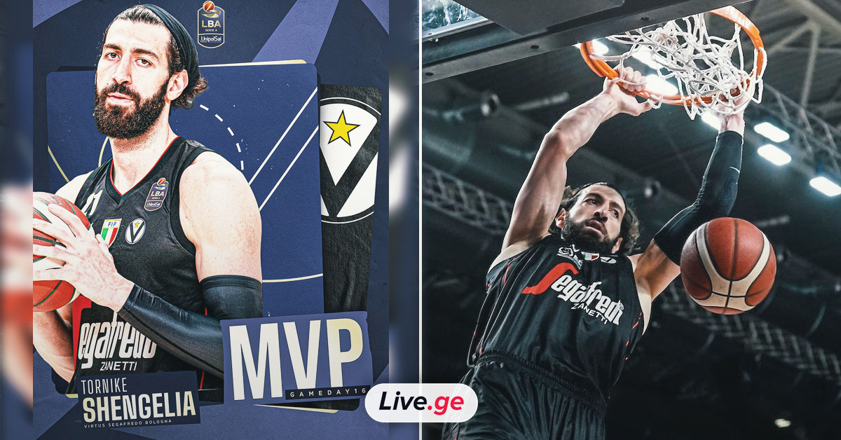 შეგახსენებთ, რომ თორნიკე შენგელიას "ვირტუს ბოლონია" იტალიის სერია ა-ს ლიდერობს. მათ ანგარიშზე 25 მატჩიდან 22 გამარჯვებაა. შემდეგ მატჩში "ვირტუს ბოლონია" სტუმრად "პესაროს" წინააღმდეგ ჩაატარებს.È @TokoShengelia23 il Miglior Giocatore del turno! ✨ Il giocatore della @Virtusbo dopo una grande prestazione è stato votato da voi come #MVP del recupero della 16esima giornata #LBASerieA @UnipolSai_CRP: 1️⃣9️⃣ punti per lui 1️⃣1️⃣ rimbalzi 2️⃣6️⃣ di valutazione 🔥#TuttoUnAltroSport pic.twitter.com/V0UlXSaZni — Lega Basket Serie A (@LegaBasketA) April 15, 2022