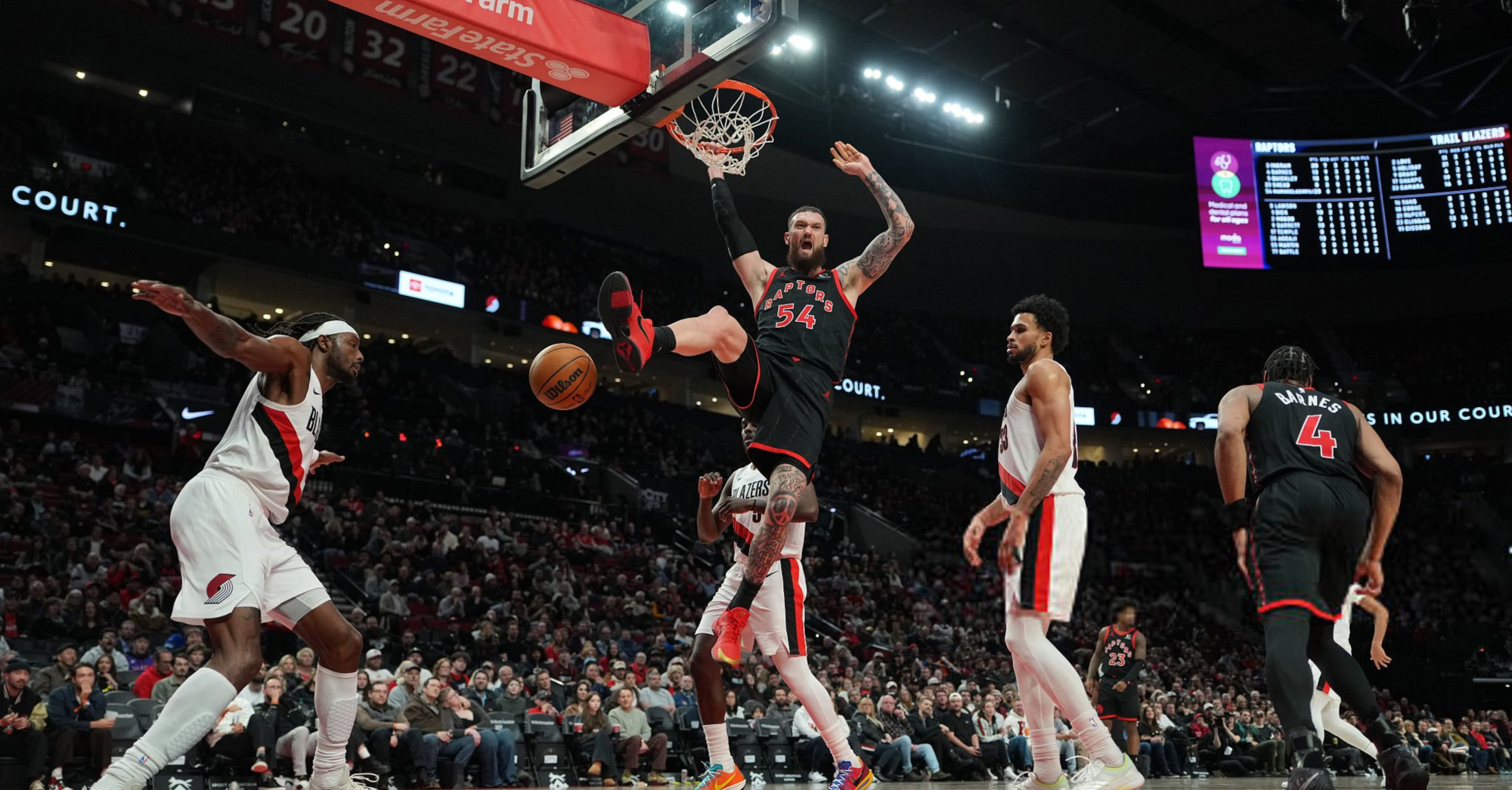 NBA-ს რეგულარული სეზონის მორიგ შეხვედრაში ტორონტო რეპტორსმა პორტლენდ ტრეილ ბლეიზერსი 110:98 დაამარცხა.