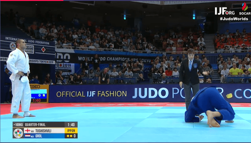 მსოფლიო ჩემპიონატის ბოლო დღეს, საქართველოს ნაკრების ღირსებას მოქმედი მსოფლიო ჩემპიონი – გურამ თუშიშვილი იცავს. იგი განთესილია და ასპარეზობაში მეორე ეტაპიდან ჩაერთო, სადაც მისი მეტოქე ინდოელი – შუბჰამ კუმარი იყო. გურამმა მსოფლიო ჩემპიონატი გამარჯვებით დაიწყო და შემდეგ ეტაპზე გავიდა, სადაც მისი მეტოქე ტაჯიკი – თემურ რახიმოვი იყო. გურამს არც ტაჯიკი ძიუდოისტის დამარცხება არ გაჭირვებია და 1/4 ფინალში გავიდა, სადაც მისი მეტოქე უძლიერესი ჰოლანდიელი - ჰენკ გროლი იყო. გურამს არც გროლის გამარცხება გაჭირვებია და ნახევარფინალში გავიდა, სადაც მისი მეტოქე იაპონელ - ჰარასავასა და ბრაზილიელ - რაფაელ სილვას შორის გამარჯვებული იქნება.