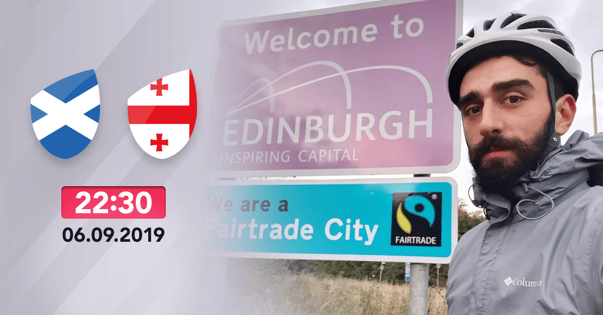 საქართველოს მორაგბეთა ნაკრების გულშემატკივარი და მოგზაური - სანდრო დათიშვილი, დღევანდელი მატჩისთვის (შოტლანდია - საქართველო) თბილისიდან ედინბურგში ველოსიპედით ჩავიდა.