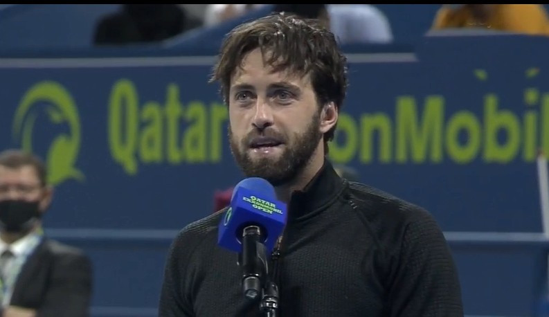 "ძალიან ბედნიერი და საოცრად გახარებული ვარ. არ მოველოდი, რომ ახლა აქ ვიქნებოდი. მინდა მივულოცო რობერტოს კარგი ტურნირის ჩატარებისთვის. ასევე, მადლობას ვუხდი ყატარის სახელმწიფოს ასეთი ტურნირის ორგანიზებისთვის. ამის შემდეგ ქართველმა ჩოგბურთელმა გულშემატკივარსა და შვილს ქართულად მიმართა. "ლუკას, მამიკო, მინდა დაიმახსოვრო, რომ შენ ჩემთვის ყველაზე ძვირფასი ადამიანი ხარ. ძალიან მიყვარხარ და მენატრები. მინდა ასევე დიდი მადლობა გადავუხადო ქართველ გულშემატკივარს გვერდით დგომისთვის," - თქვა ნიკოლოზმა.