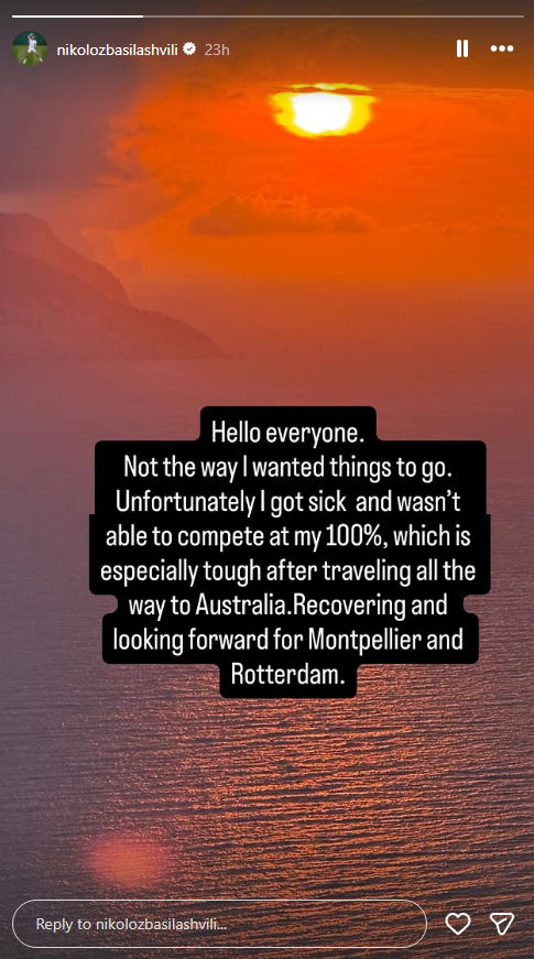 ყველაფერი არც ისე კარგად წარიმართა, როგორც მინდოდა. სამწუხაროდ ცუდად გავხდი და ვერ შევძელი 100%-იანი მზადყოფნით ასპარეზობა, ამასთან ერთად ისეთ შორ მანძილზე მგზავრობა, როგორიც ავსტრალიაა განსაკუთრებით რთულია. ახლა აღდგენის პროცესში ვარ და მოუთმენლად ველოდები მონპელიესა და როტერდამის ტურნირების დაწყებას. - ნიკოლოზ ბასილაშვილი