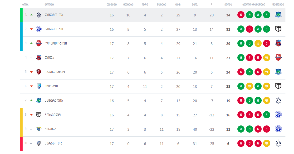 ეროვნული ლიგის 2020 წლის სეზონი კულმინაციას უახლოვდება. ამ მომენტისთვის მე-15 და მე-16 ტურების თითო-თითო შეხვედრაა გადადებული, თუმცა მე-17 სათამაშო კვირა უკვე შედგა და 5 დეკემბერს გასამართი მატჩების დასრულებისთანავე, ათივე გუნდს თითო-თითო მატჩი ექნება ჩასატარებელი.
