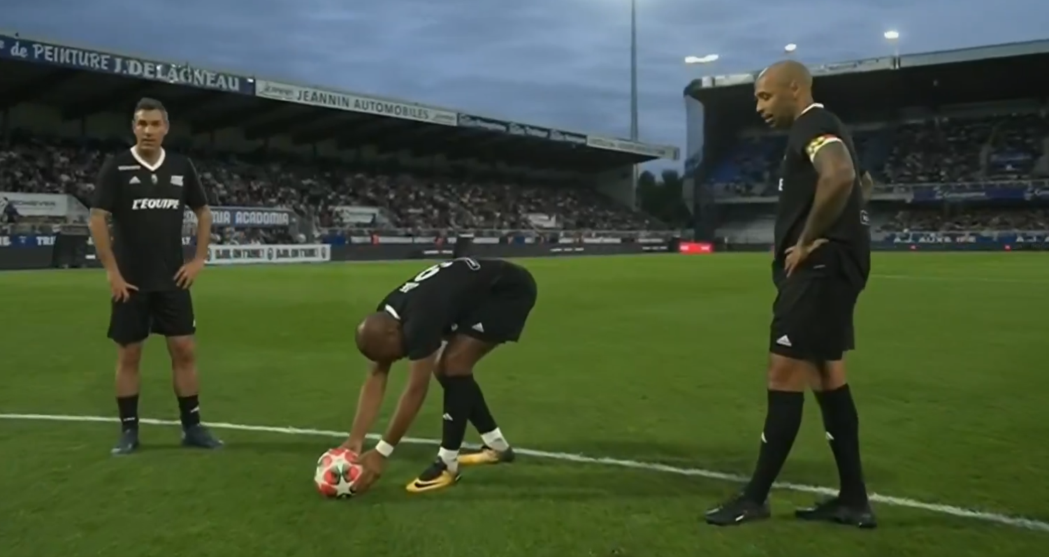 ბურთთან ანრი, დროგბა და პირესი - ჯიბრილ სისეს საიუბილეო მატჩში ლამაზი ჯარიმა გავიდა