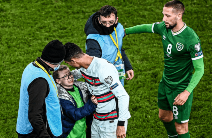 მსგავსი ინციდენტი კიდევ ერთ დაპირისპირებაში დაფიქსირდა. მსოფლიო ჩემპიონატის საკვალიფიკაციო ეტაპის ევროპის ზონის A-ჯგუფის შეხვედრაში, ირლანდია პორტუგალიას დაუპირისპირდა. დუბლინში, "ავივაზე" გამართული მატჩი, ფრედ 0:0 დასრულდა. შეხვედრის დასრულების შემდეგ, პატარა ირლანდიელი გულშემატკივარი მოედანზე შეიჭრა და კრიშტიანუ რონალდუსთან მიახლოება სცადა. ზლატანისგან განსხვავებით, რომელმაც ქართველ ფანს ხელი ჰკრა, პორტუგალიელი სუპერვარსკვლავი ბავშვს ჩაეხუტა და მაისური უსახსოვრა.