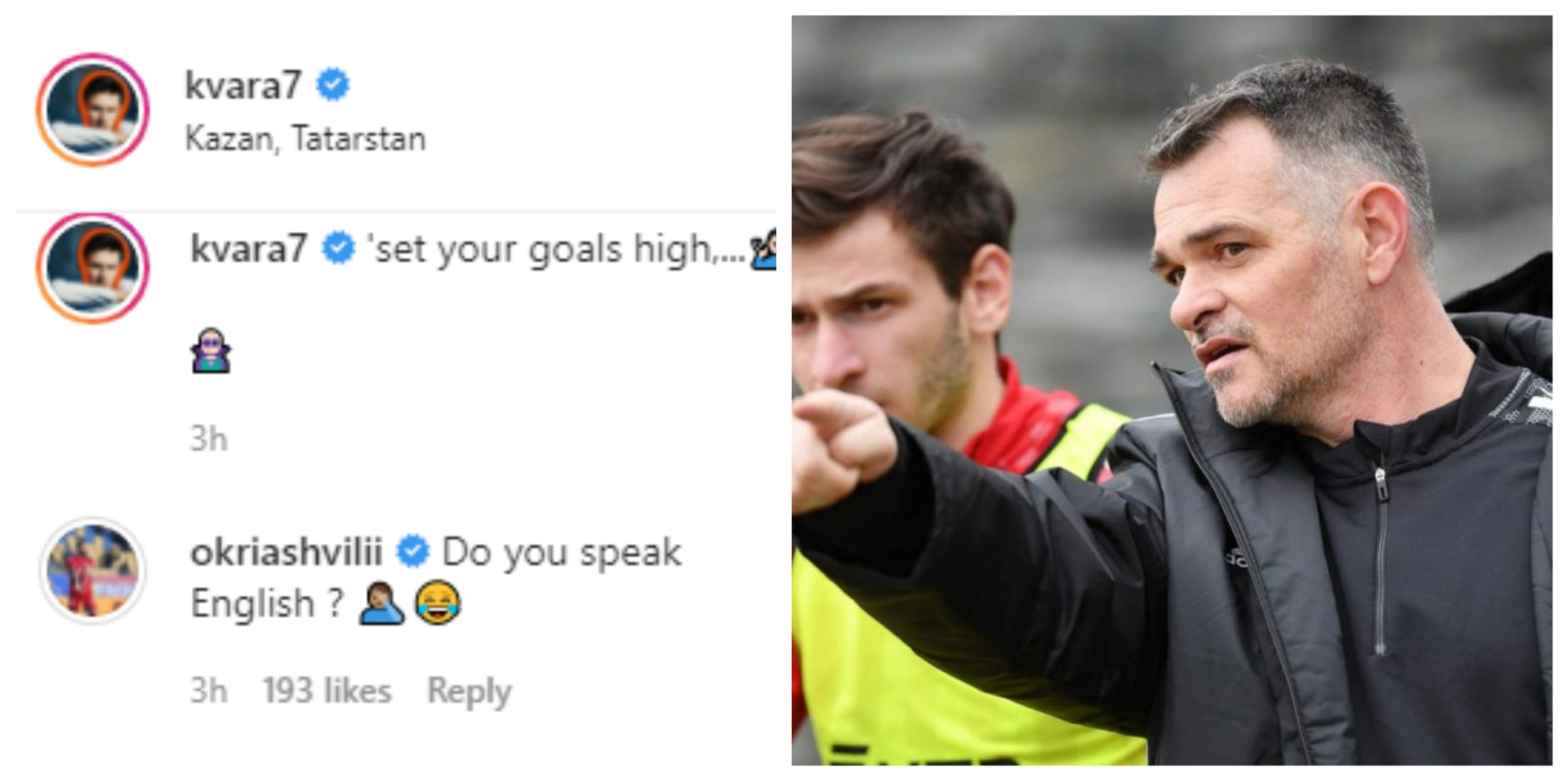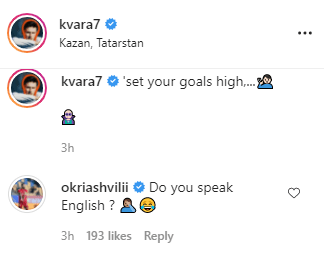 ყაზანის "რუბინის" ფლანგის შემტევმა ინგლისურ ენაზე Instagram-ში დაწერა, რომ საკუთარი მიზნები მაღალ დონეზე უნდა დავაყენოთ, რაზეც ეროვნული გუნდის მეათე ნომერმა ასევე ინგლისურად დააკომენტარა და ხვიჩას ჰკითხა ამ ენაზე საუბარი თუ შეეძლო, ვილი სანიოლის პასუხი კი კიდევ უფრო სახალისო იყო - "უკეთესად, ვიდრე შენ" - წერდა ფრანგი სპეციალისტი, რასაც არაერთი პოზიტიური გამოხმაურება მოჰყვა.