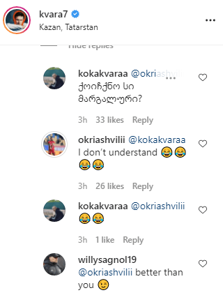 სოციალურ ქსელში საქართველოს ნაკრების ფეხბურთელებსა და მთავარ მწვრთნელს სახალისო დიალოგი ჰქონდათ, რომელიც ხვიჩა კვარაცხელიას პოსტს მოჰყვა.