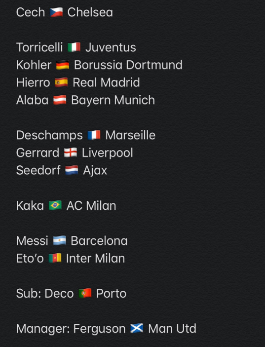 აღსანიშნავია, რომ გუნდის შედგენისას კარაგერმა რამდენიმე კრიტერიუმით იხელმძღვანელა. მთავარ კრიტერიუმს კი ის ფაქტი წარმოადგენს, რომ ერთი გუნდისა და ეროვნების მხოლოდ ერთი ფეხბურთელი მოხვდა გუნდში.