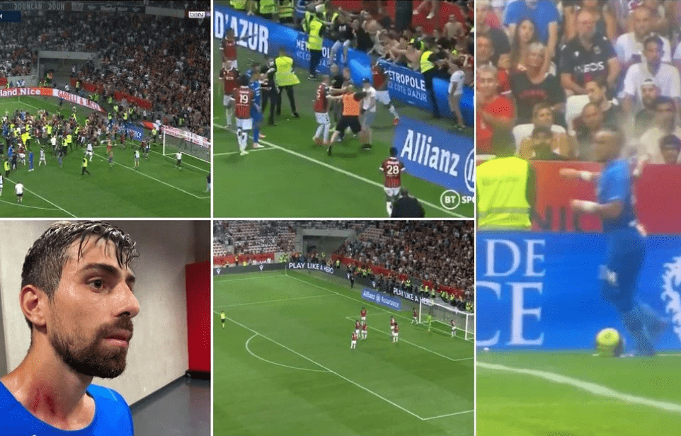 The incident that caused the suspension of the Nice vs Marseille game.#OM#Ligue1UberEatspic.twitter.com/K1vUwOoCbC — Matthew Bauer (@mattbauer__5) August 22, 2021