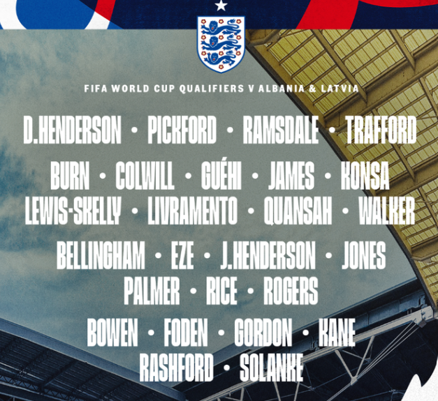 ინგლისის ეროვნული ნაკრების შემადგენლობა
