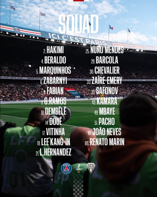 რამდენიმე წუთის წინ კი პსჟ-მ ანჟესთან სათამაშო განაცხადი გამოაქვეყნა, სადაც ხვიჩა კვარაცხელია არ იყო - მოგვიანებით კი გაირკვა, რომ 24 წლის ქართველ შემტევს კუნთის დისკომფორტი აქვს, რის გამოც ლუის ენრიკემ მისი დასვენება გადაწყვიტა.