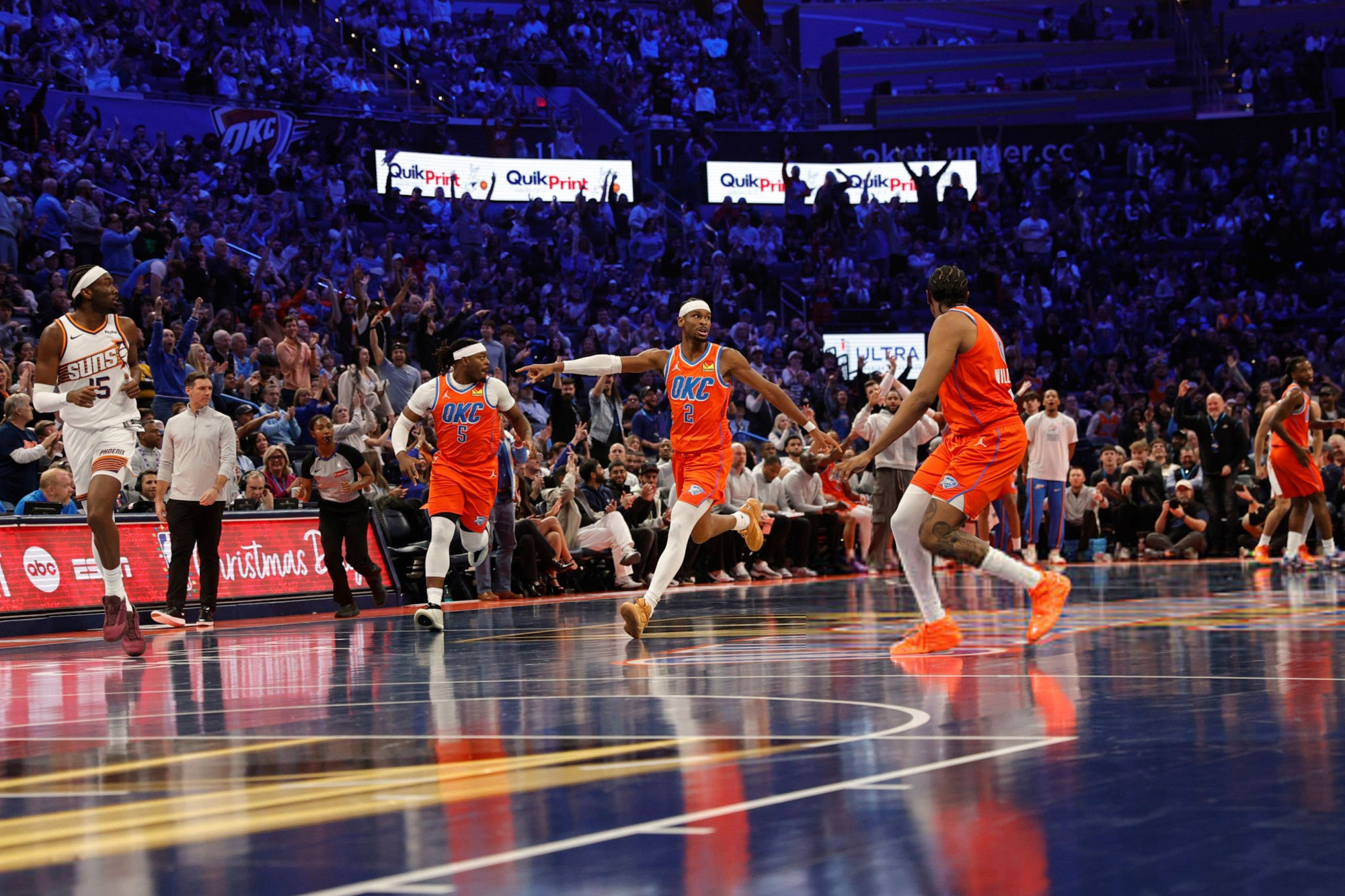 NBA-ს მოქმედმა ჩემპიონმა ოკლაჰომამ, ახალი სეზონიც საოცრად დაიწყო. ოკლაჰომამ ფინიქსი 49-ქულიანი სხვაობით 138:89 დაამარცხა და NBA-ს თასის 1/2-ფინალში გავიდა.