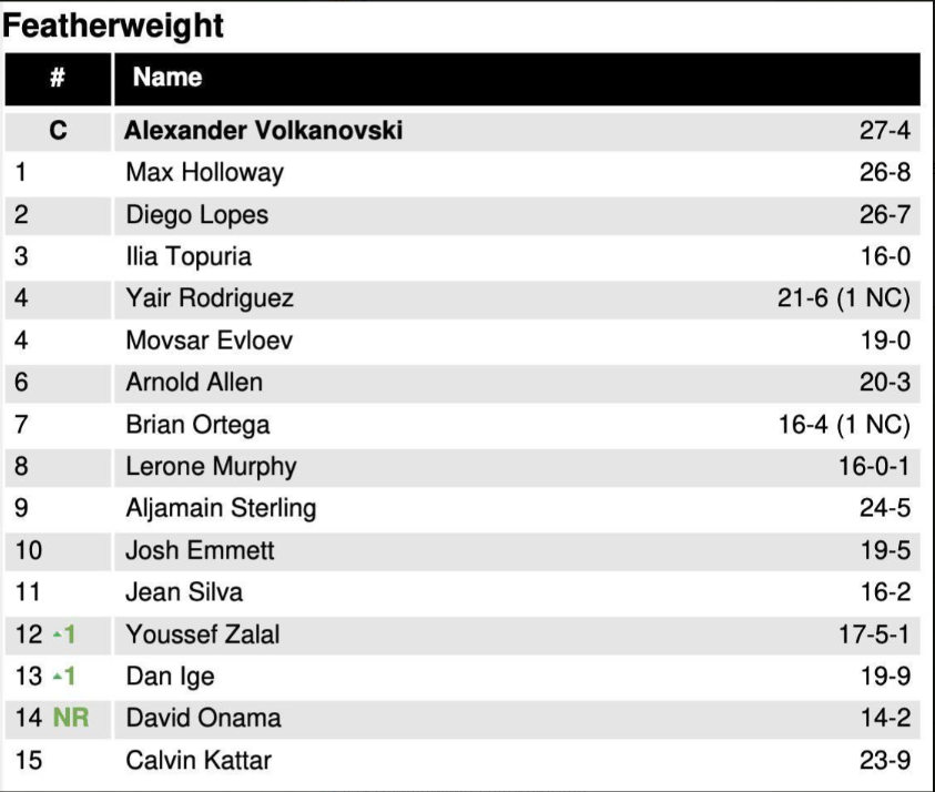 გიგა ჭიკაძე UFC რეიტინგში აღარ იქნება. დევიდ ონამასთან მარცხის შემდეგ, "ნინძას" ადგილი თავად უგანდელმა დაიკავა. ჭიკაძესთან მოპოვებული გამარჯვებით ონამამ დივიზიონში მე-14 პოზიცია მიიღო.