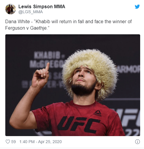 აღსანიშნავია, რომ ეს არ არის ერთადერთი საჩუქარი, რომელიც ორგანიზაციის პრეზიდენტმა ფანებს მოუმზადა. ESPN-თან საუბარში დანა უაითმა დაადასტურა, რომ ტონი ფერგიუსონსა და ჯასტინ გეიჯის შორის გამარჯვებული, UFC-ის მსუბუქი წონითი კატეგორიის ჩემპიონის ტიტულისათვის ხაბიბ ნურმაგომედოვს დაუპირისპირდება. გავრცელებული ინფორმაციით, ბრძოლა 2020 წლის შემოდგომაზე გაიმართება.