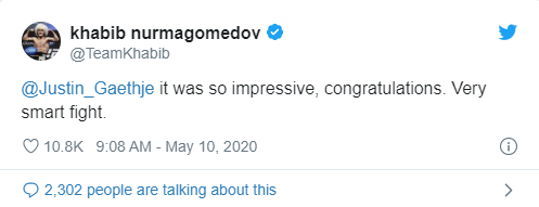ხაბიბმა ჯასტინ გეიჯს გამარჯვება მიულოცა და აღნიშნა, რომ შთამბეჭდავი ბრძოლა იყო.