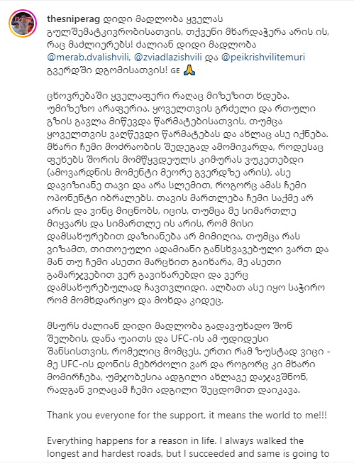 Dana White's Contender Series-ზე მარცხის შემდეგ, გოგოლაძე განცხადებას ავრცელებს