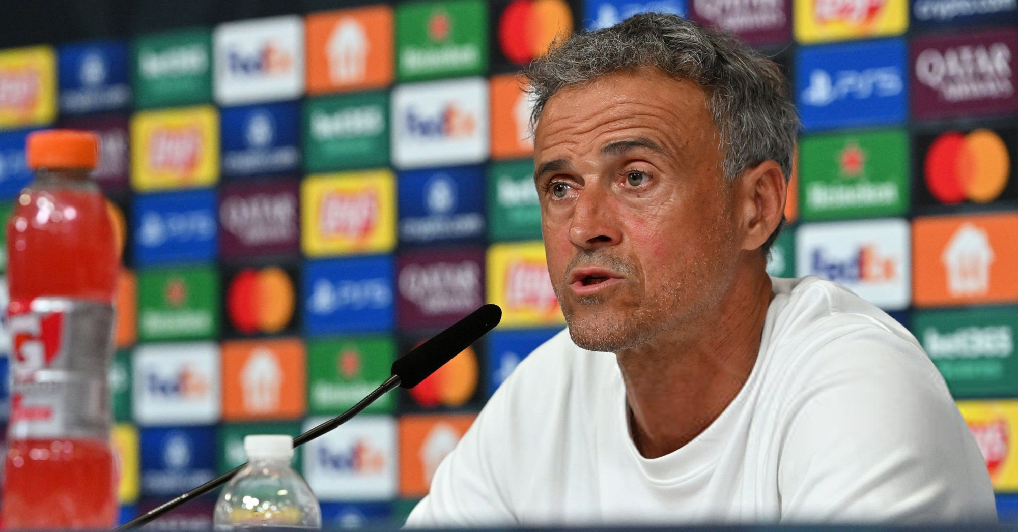 პსჟ-ს მთავარი მწვრთნელი, ლუის ენრიკე, უეფას ჩემპიონთა ლიგის ახალი სეზონის საწყის მატჩში, ატალანტასთან შეხვედრის წინ პრესკონფერენციას მართავს. მოქმედი ჩემპიონის ესპანელი მწვრთნელი ტურნირის ზედიზედ მეორედ მოგების ამბიციას ამჟღავნებს და საქართველოს ნაკრების ვარსკვლავის ხვიჩა კვარაცხელიას ტრავმის შესახებ საუბრობს.