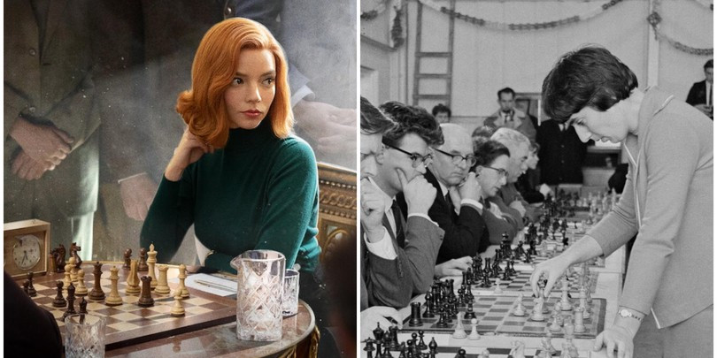 "ამ სერიალში რეფერენსი ერთადერთ რეალურ ქალ მოჭადრაკესთან გვხვდება და ეს ნონა გაფრინდაშვილია. ბოლო ეპიზოდში გვეუბნებიან, რომ გაფრინდაშვილი არასდროს შებრძოლებია კაც მოთამაშეს, რაც, ცხადია, სიმართლე არაა. მხატვრულია ამბავი თუ არა, საფრთხილოა ნამდვილ სახელებზე არასწორი ინფორმაციის მიწოდება. გაფრინდაშვილმა 1960-იან წლებში ბევრი იბრძოლა, რომ კაცების ტურნირებში ჩართულიყო".