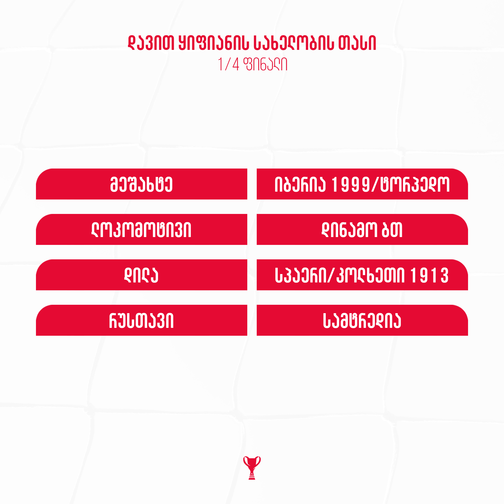 საქართველოს დავით ყიფიანის სახელობის თასის 1/4-ფინალური წყვილები ასეთია: