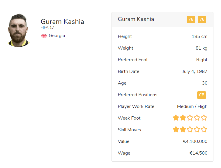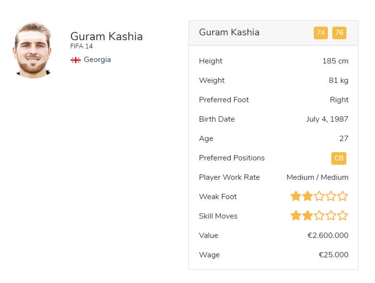 საუკეთესო ქართველი ფეხბურთელები FIFA 05-დან FIFA 19-ის ჩათვლით