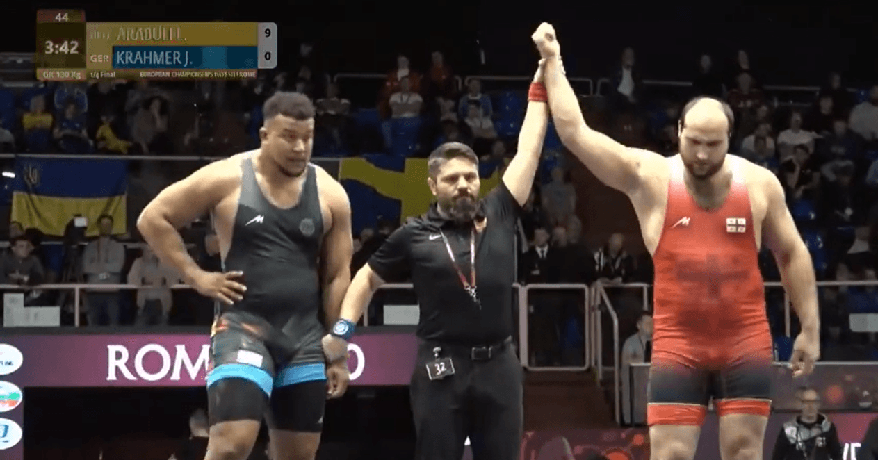 ლევან არაბულმა (130 კგ) გერმანელ კრამერს 9-0 სძლია და ევროპის ჩემპიონატის ნახევარფინალში გავიდა სადაც ფინელ სავოლაინენს შეხვდება.